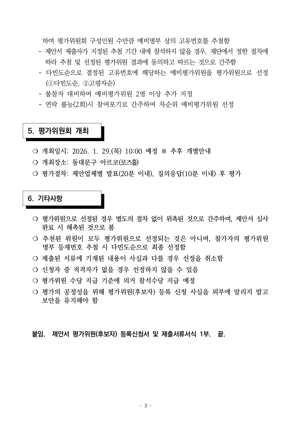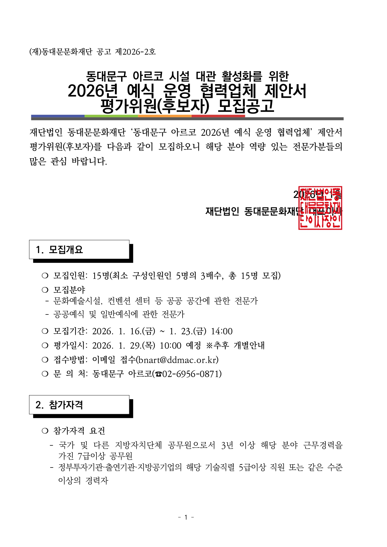 µ¿´ë¹®±¸ ¾Æ¸£ÄÚ ½Ã¼³ ´ë°ü Ȱ¼ºÈ¸¦ À§ÇÑ 2026³â ¿¹½Ä ¿î¿µ Çù·Â¾÷ü Á¦¾È¼ Æò°¡À§¿ø(Èĺ¸ÀÚ) ¸ðÁý°ø°í.pdf