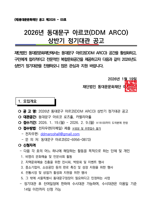 [ µ¿´ë¹®±¸ ¾Æ¸£ÄÚ] 2026³â »ó¹Ý±â Á¤±â´ë°ü °ø°í
