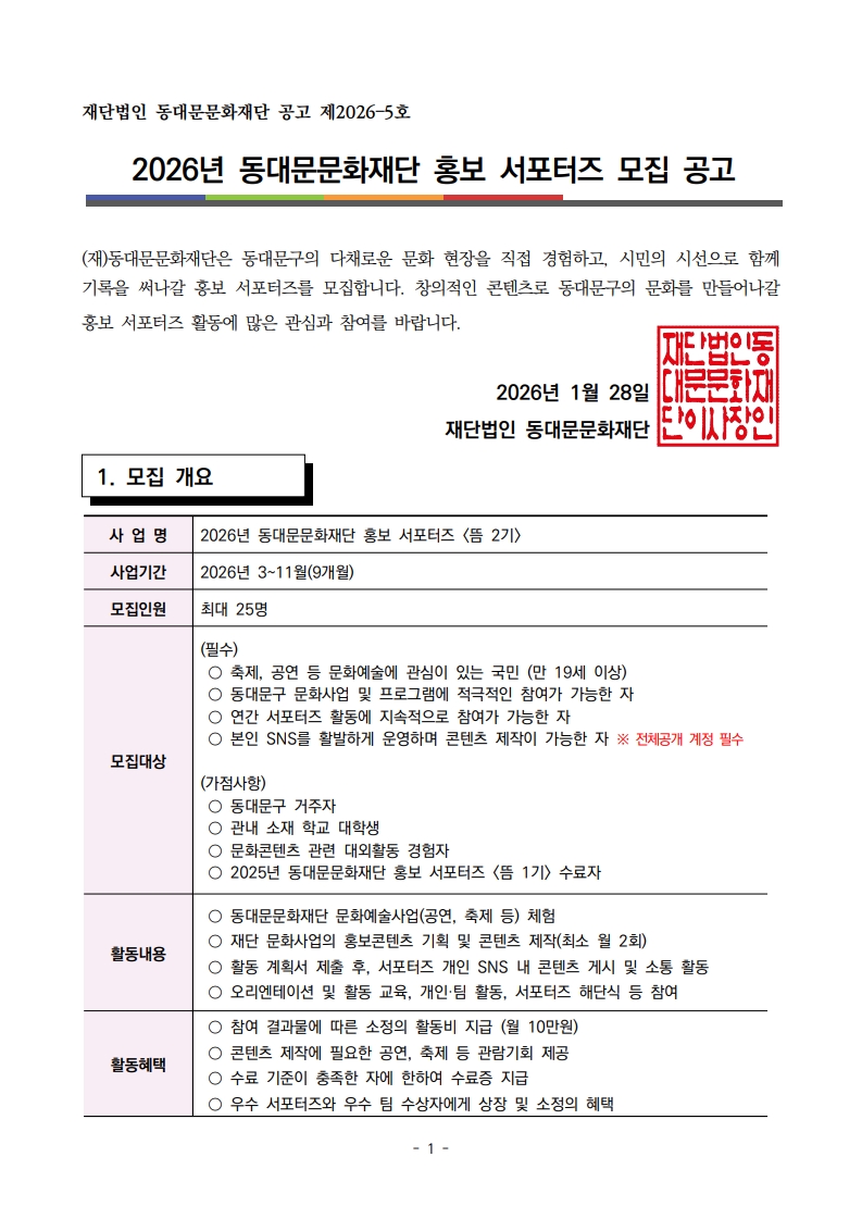 2026³â µ¿´ë¹®¹®ÈÀç´Ü È«º¸ ¼Æ÷ÅÍÁî <¶ä 2±â> ¸ðÁý °ø°í