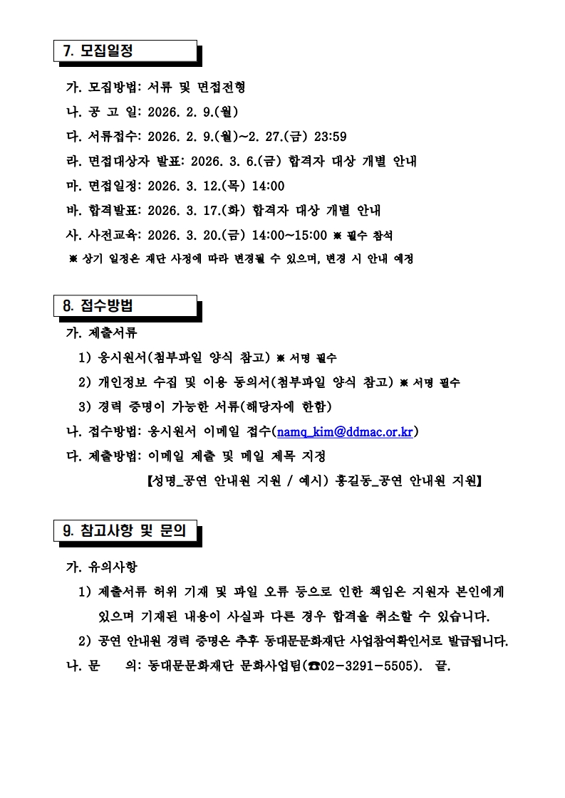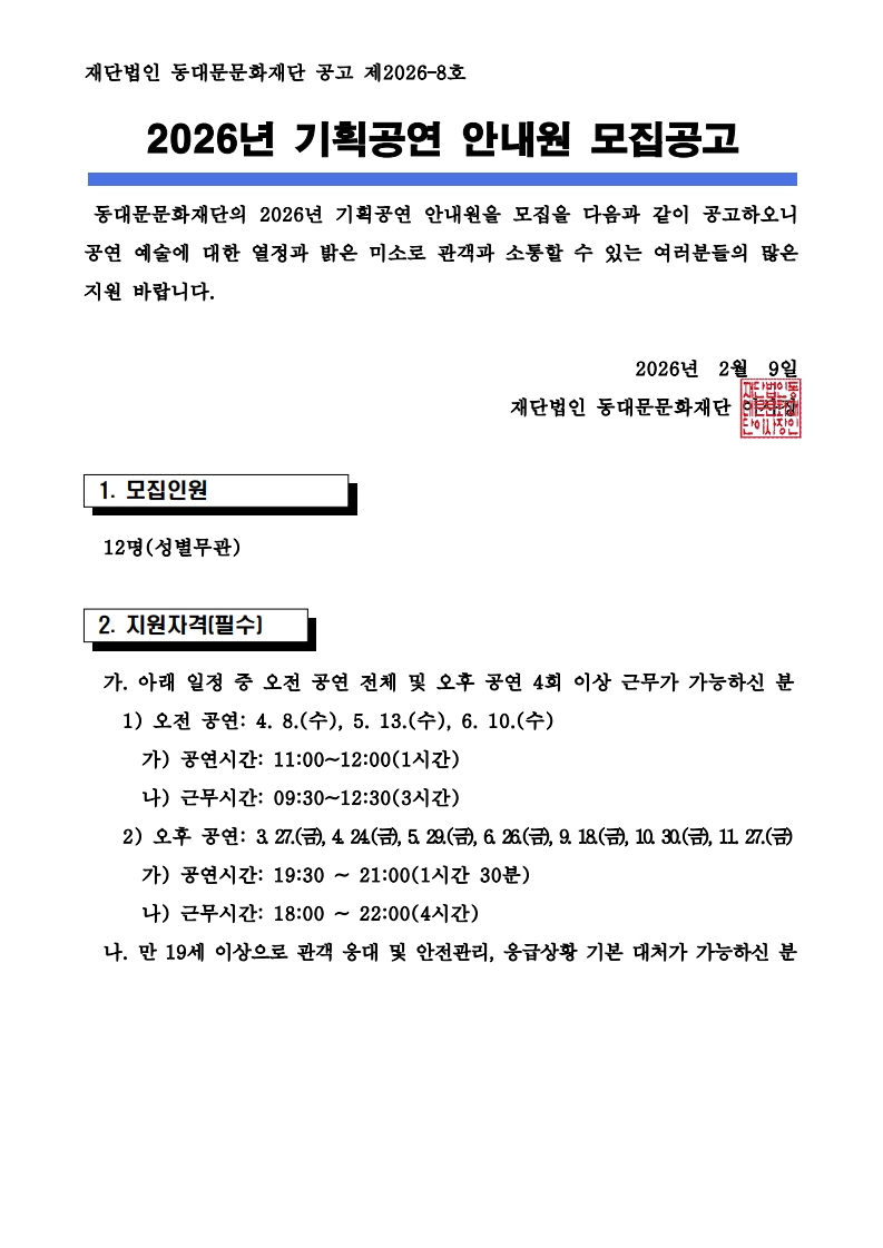 2026³â µ¿´ë¹®¹®ÈÀç´Ü ±âȹ°ø¿¬ ¾È³»¿ø ¸ðÁý °ø°í
