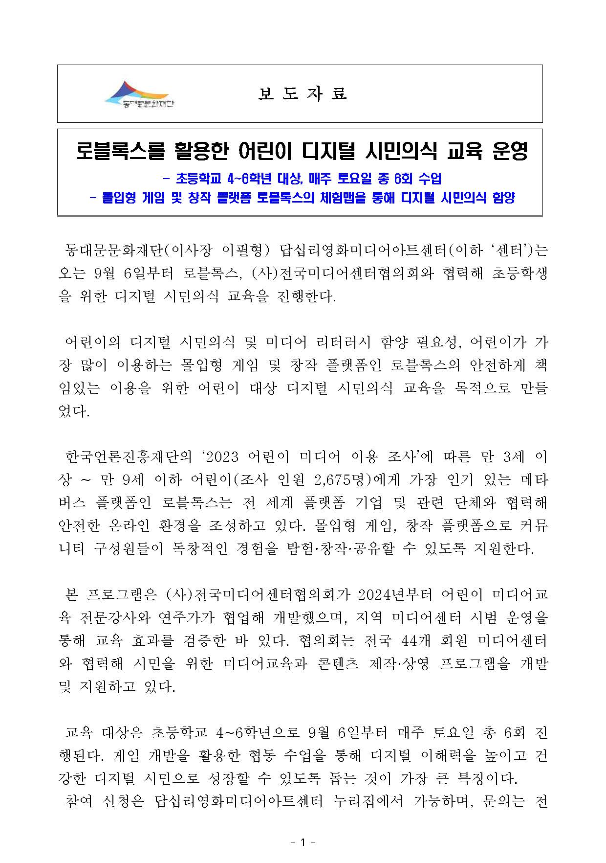 [¼öÁ¤ º¸µµÀÚ·á] ·Îºí·Ï½º¸¦ Ȱ¿ëÇÑ ¾î¸°ÀÌ µðÁöÅÐ ½Ã¹ÎÀÇ½Ä ±³À° ¿î¿µ