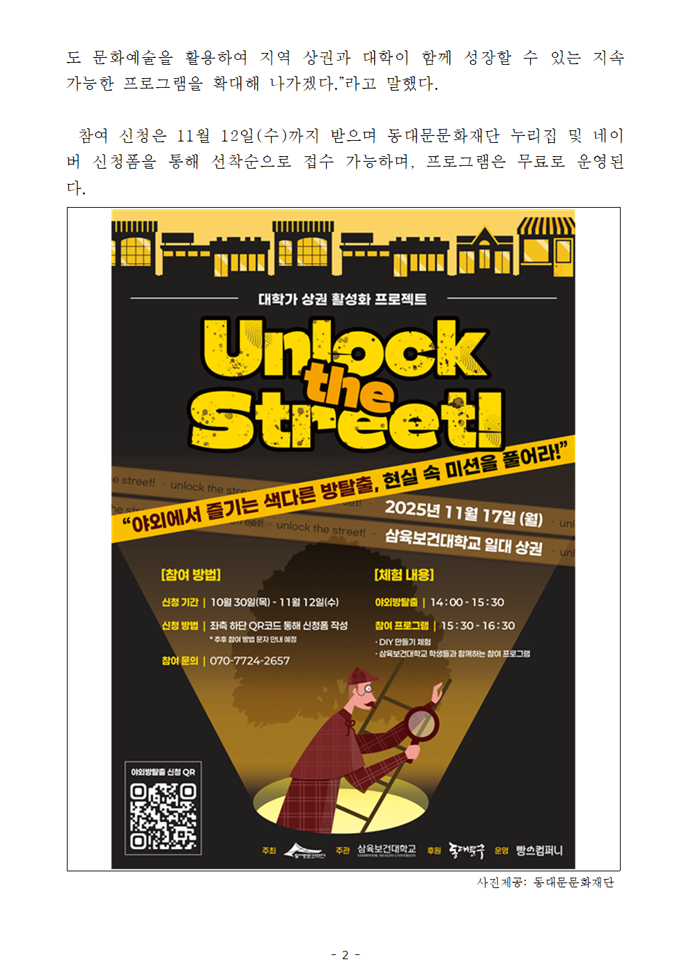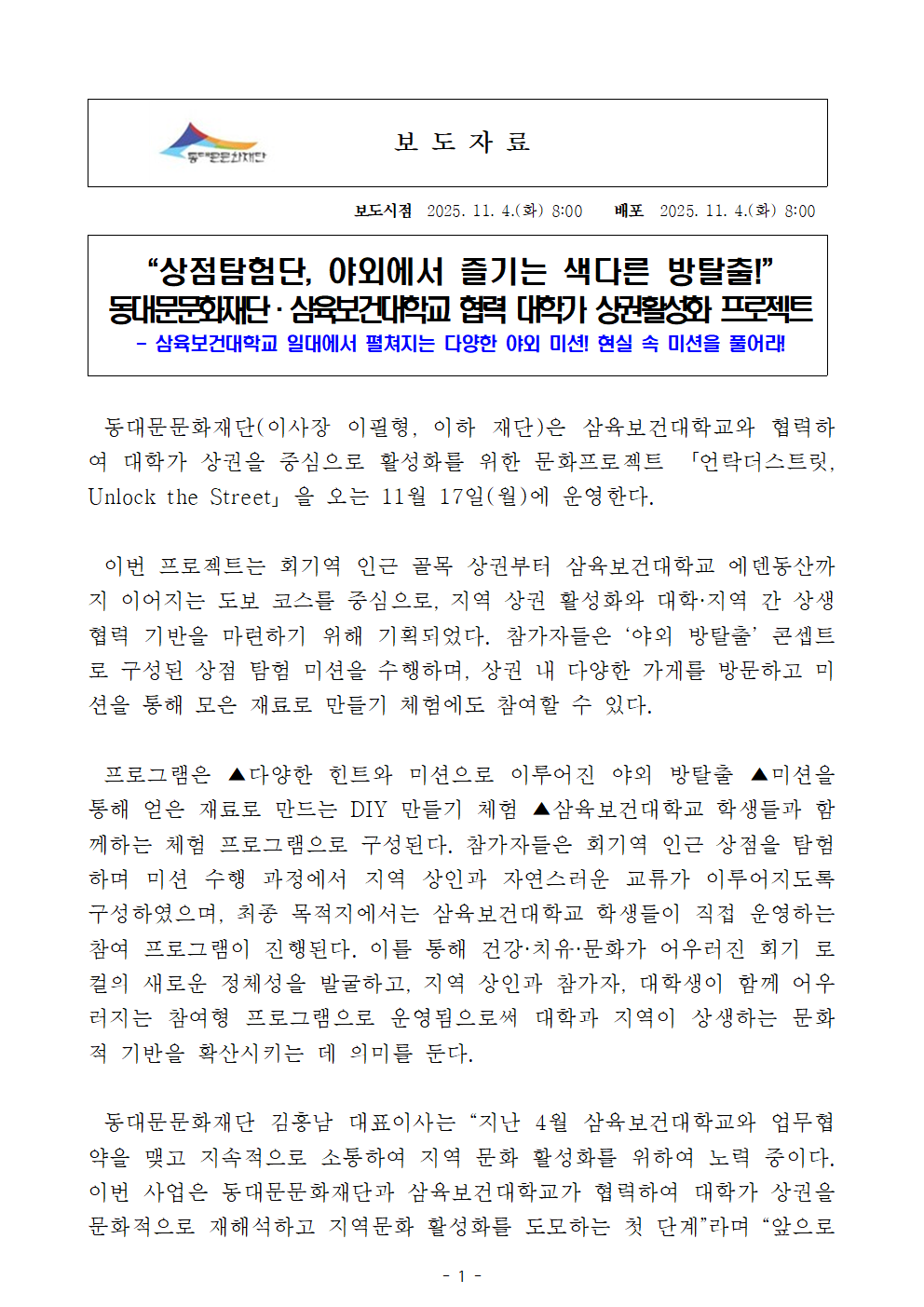 [º¸µµÀÚ·á] µ¿´ë¹®¹®ÈÀç´Ü-»ïÀ°º¸°Ç´ëÇб³ Çù·Â ´ëÇа¡ »ó±ÇȰ¼ºÈ ÇÁ·ÎÁ§Æ®