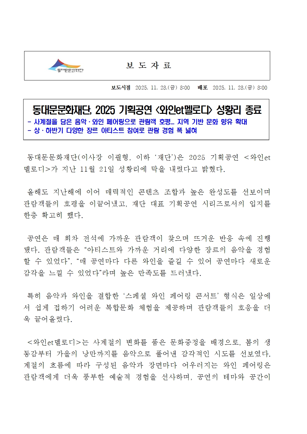 [º¸µµÀÚ·á] 2025 µ¿´ë¹®¹®ÈÀç´Ü ±âȹ°ø¿¬ ¿ÍÀÎet¸á·Îµð ¼º·á
