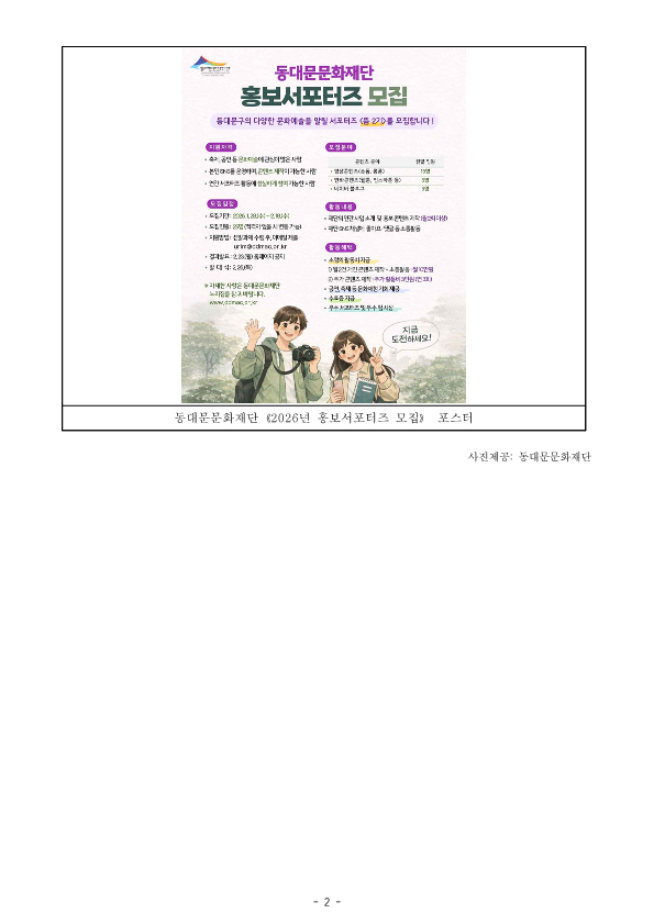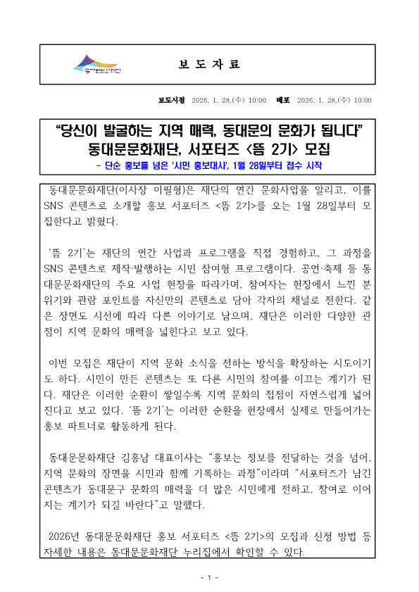 [º¸µµÀÚ·á] 2026³â µ¿´ë¹®¹®ÈÀç´Ü È«º¸¼Æ÷ÅÍÁî ¸ðÁý.hwp