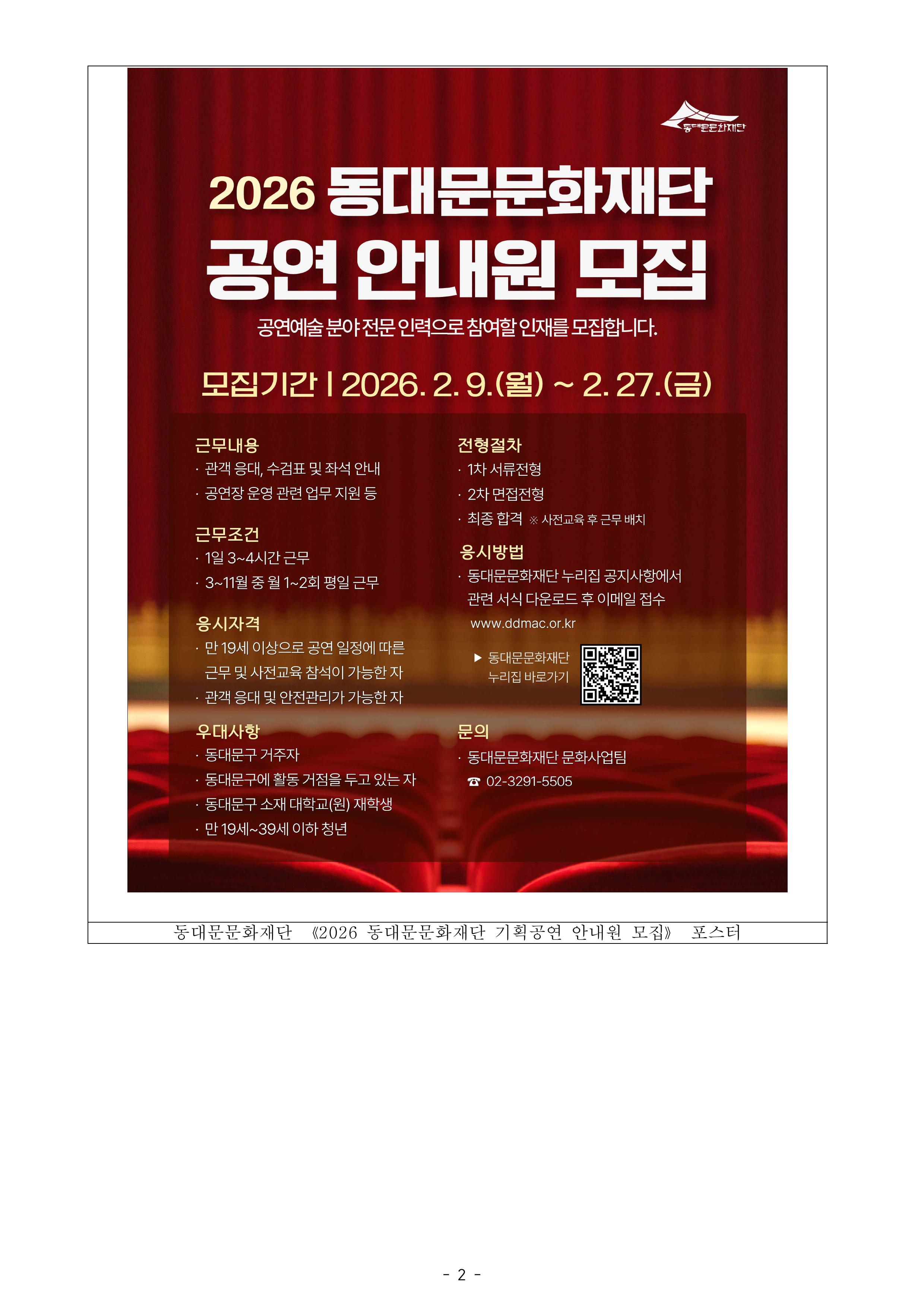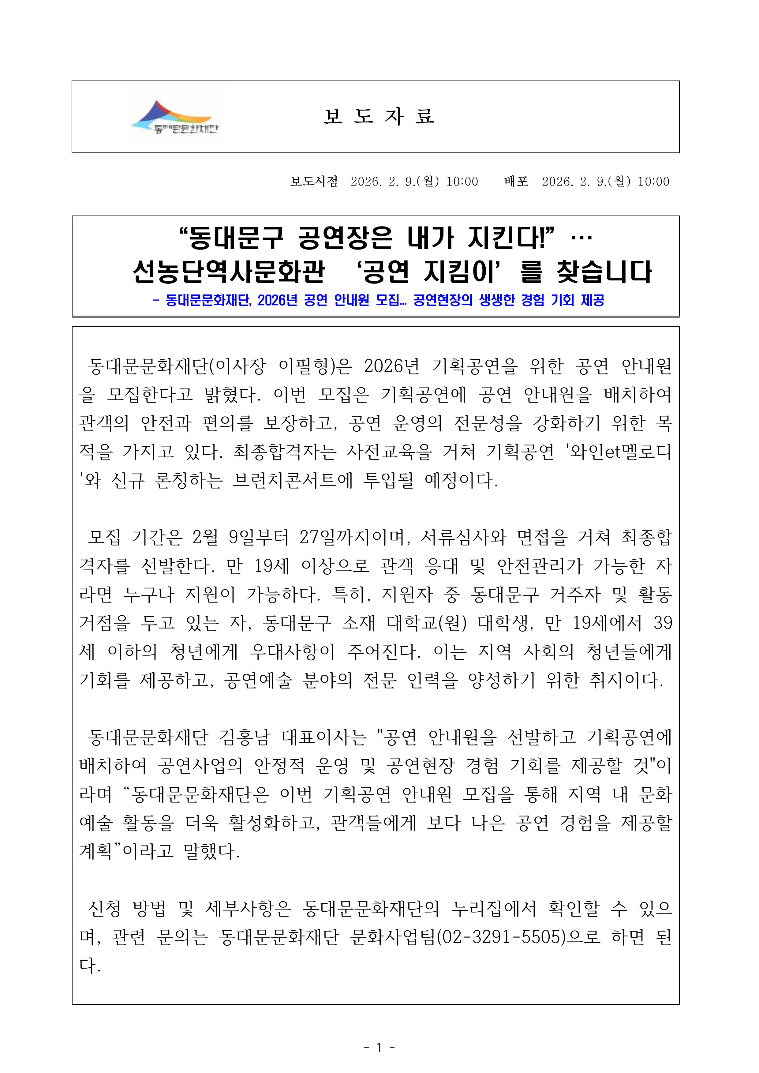 [º¸µµÀÚ·á][µ¿´ë¹®¹®ÈÀç´Ü] 2026 ±âȹ°ø¿¬ ¾È³»¿ø ¸ðÁý.hwp