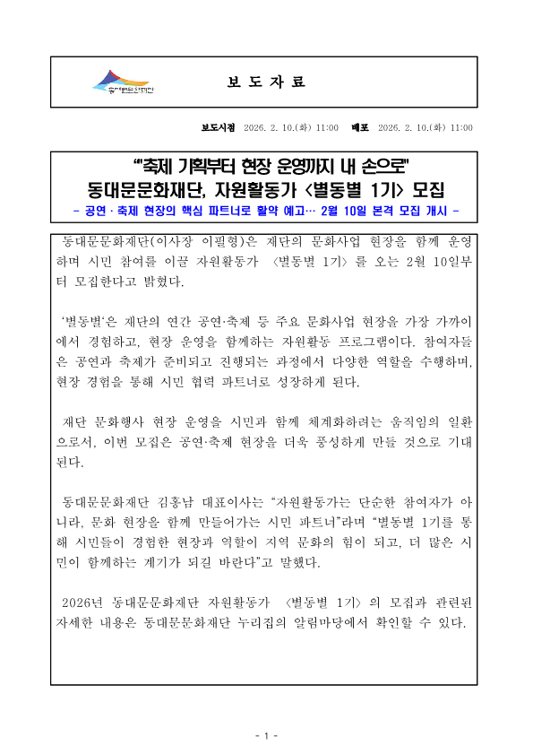 [º¸µµÀÚ·á][µ¿´ë¹®¹®ÈÀç´Ü] 2026³â µ¿´ë¹®¹®ÈÀç´Ü ÀÚ¿øÈ°µ¿°¡ ¸ðÁý.hwp