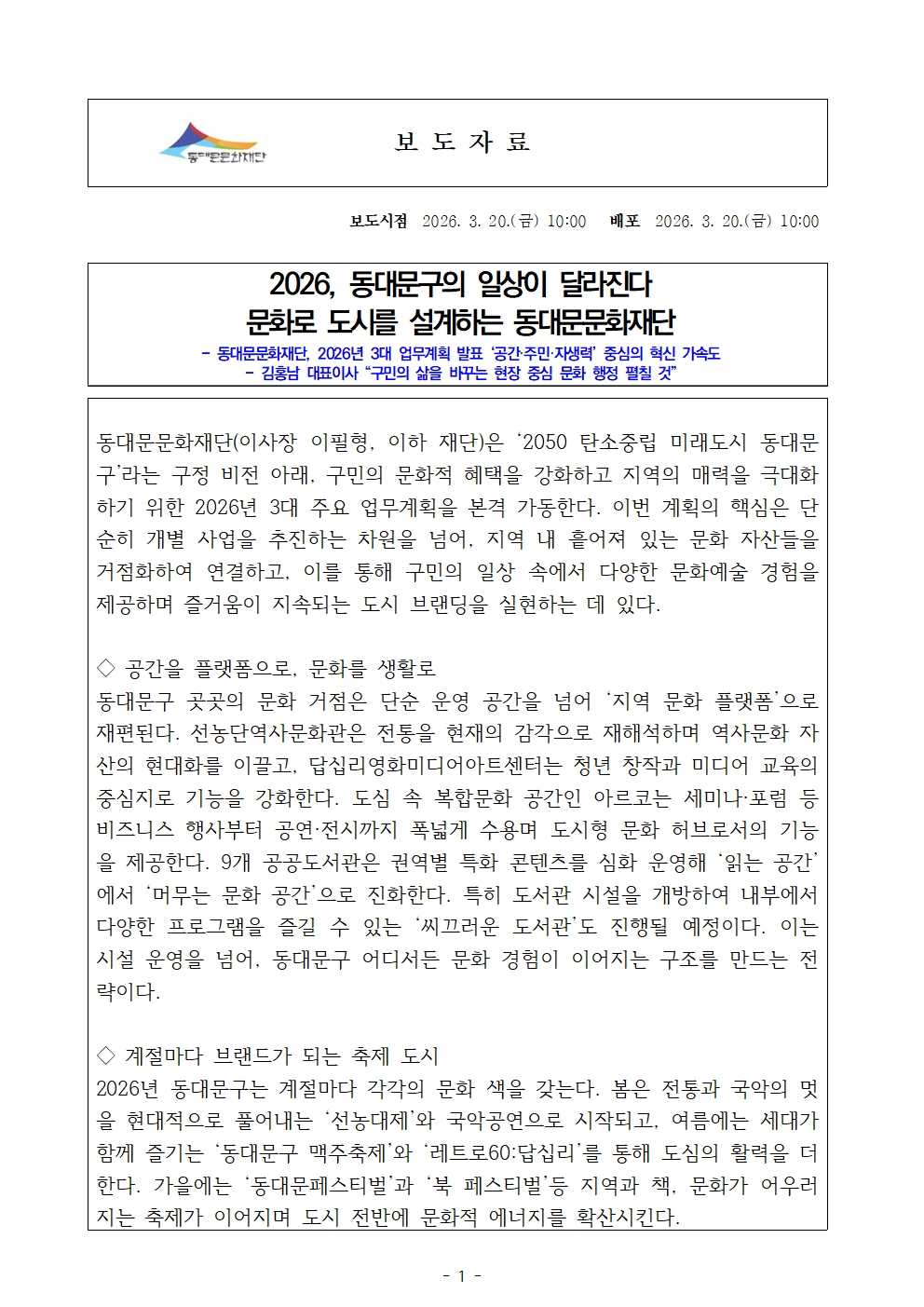[º¸µµÀÚ·á] 2026, µ¿´ë¹®±¸ÀÇ ÀÏ»óÀÌ ´Þ¶óÁø´Ù. ¹®È·Î µµ½Ã¸¦ ¼³°èÇÏ´Â µ¿´ë¹®¹®ÈÀç´Ü