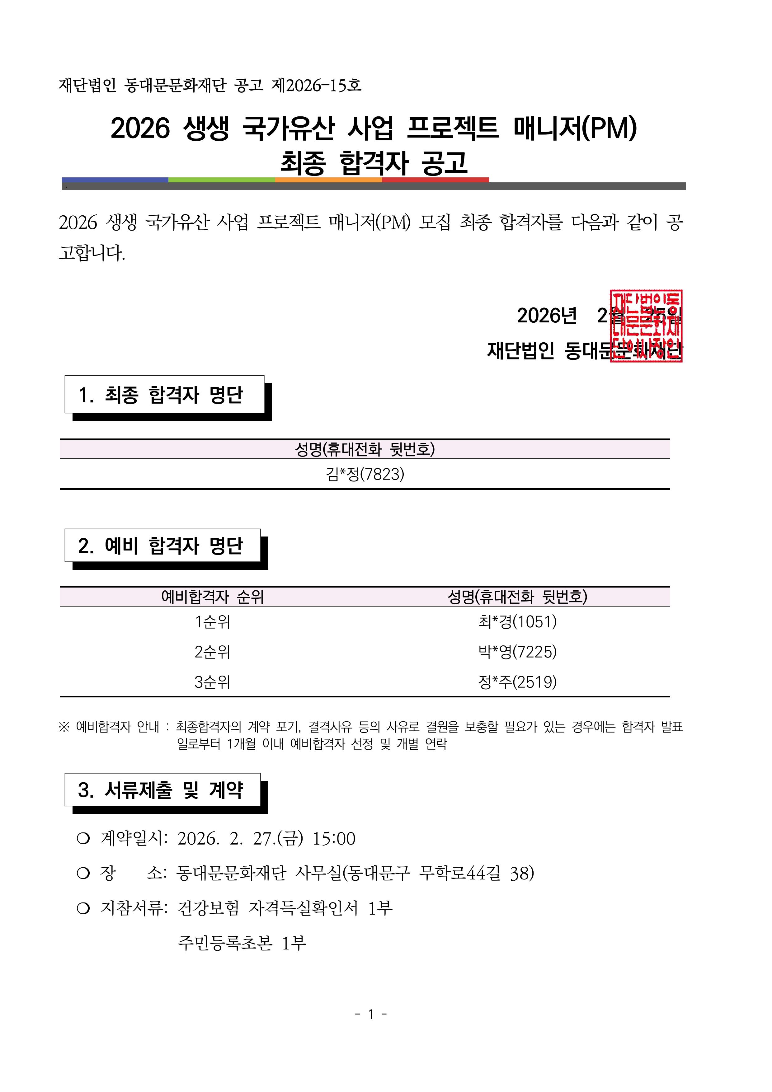2026 »ý»ý±¹°¡À¯»ê »ç¾÷ ÇÁ·ÎÁ§Æ® ¸Å´ÏÀú(PM) ¸éÁ¢ ÇÕ°ÝÀÚ °ø°í.pdf